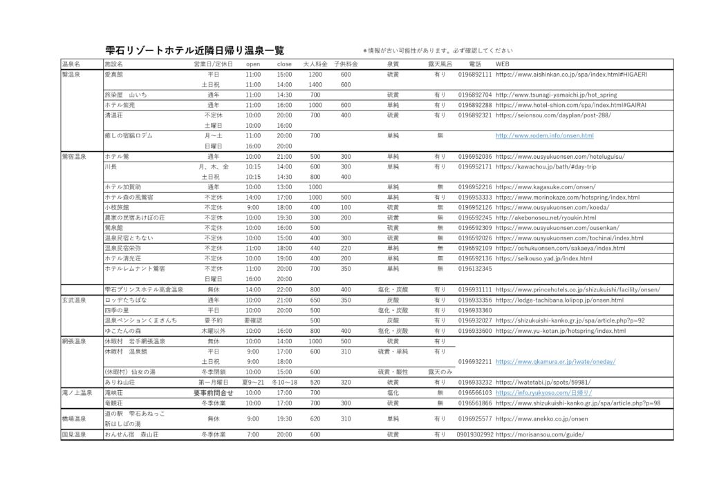 近郊日帰り温泉一覧